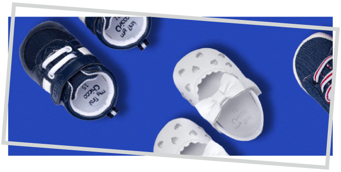 La scelta della scarpa giusta influenza lo sviluppo del piede del bambino. Le scarpe Chicco, studiate per ogni fascia d’età, sono morbide, leggere e flessibili per assecondare i naturali movimenti del piede.