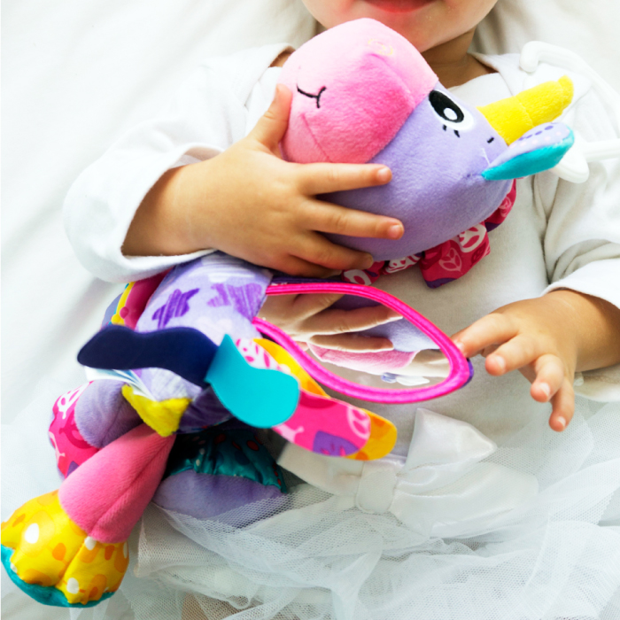 I giocattoli Playgro 0+ si concentrano sulla stimolazione dei sensi già incredibilmente sviluppati a questa età. Alla nascita infatti, i sensi di udito e olfatto sono quasi completamente sviluppati. I giocattoli dedicati a questa fascia di età sono completi di suoni, musica e colori brillanti.